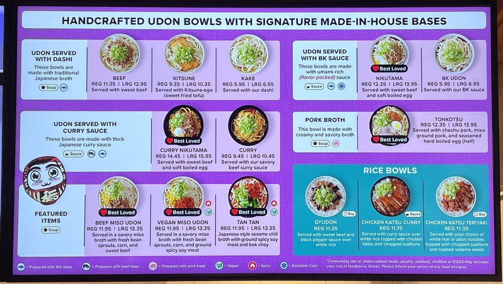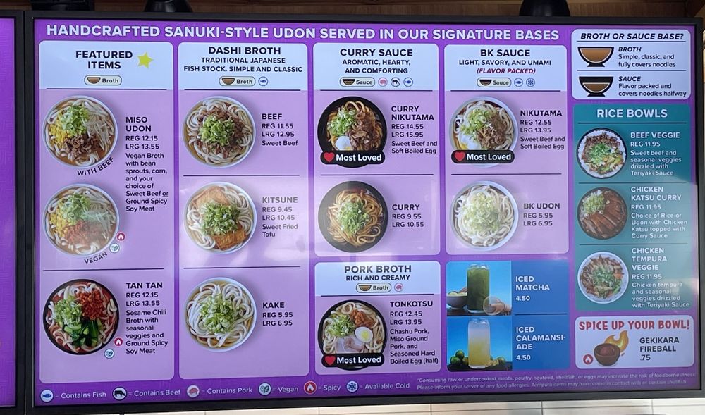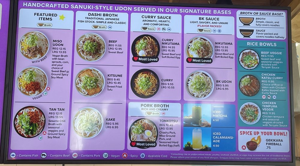 Marugame Udon in Berkeley, CA offers a range of udon dishes with various tempura options. Customers praise the fast service, friendly staff, and spacious dining area. The cafeteria-style ordering system allows for quick and easy selection of your meal. The menu includes options for pescatarians, vegans, and limited vegetarians, ensuring there is something for everyone. Customers particularly enjoy the flavorful beef udon and the silky, umami-rich Curry Nikutama. The casual and trendy atmosphere, combined with the efficient service, makes Marugame Udon a great spot for a satisfying and quick meal. With options for takeout, reservations, and catering, Marugame Udon caters to various preferences and occasions, making it a must-try for udon lovers.
